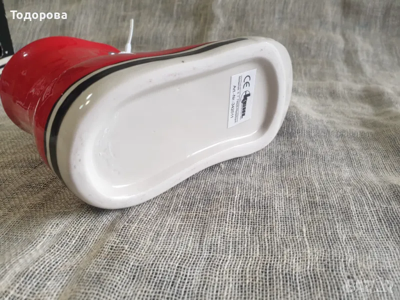 Порцеланов моливник -кец .Неупотребяван.В оригиналната си кутия,ярко червен цвят.Дължина - 16 см.Височина- 10 см.