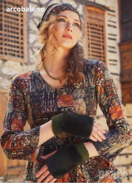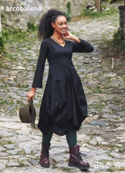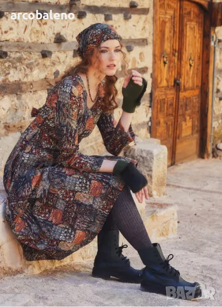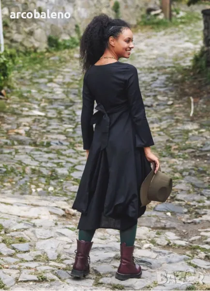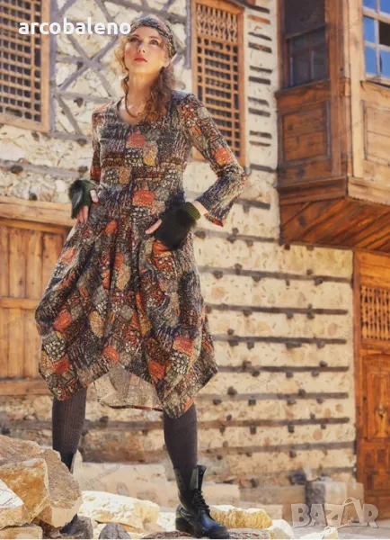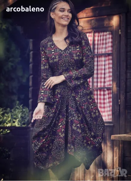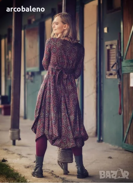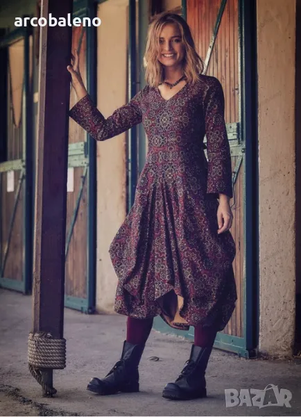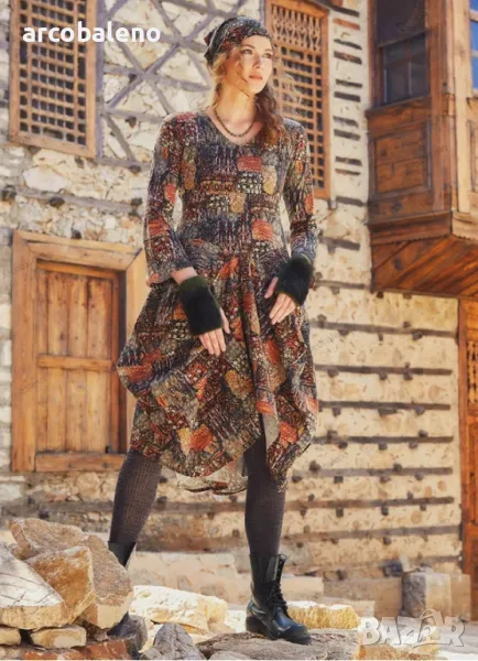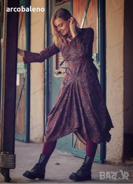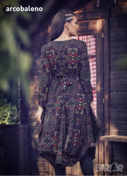 Дамска рокля с дълъг ръкав и асиметричен подгъв в бохемски стил