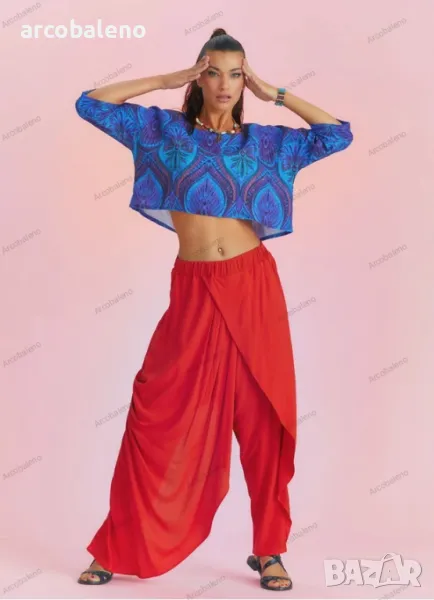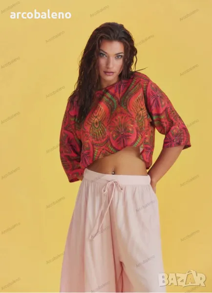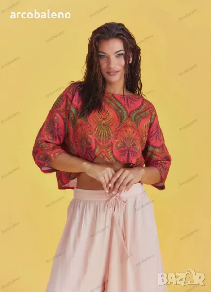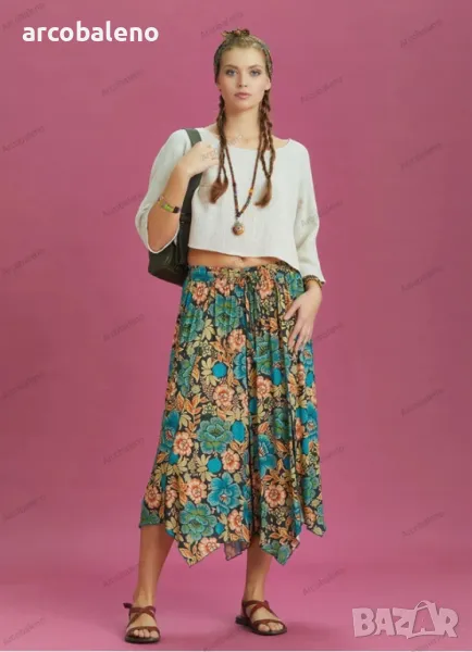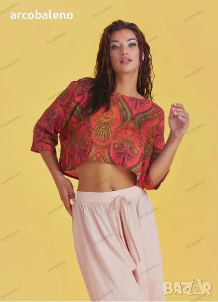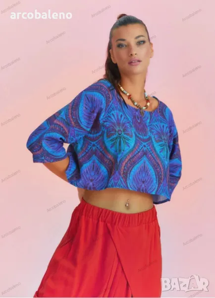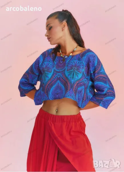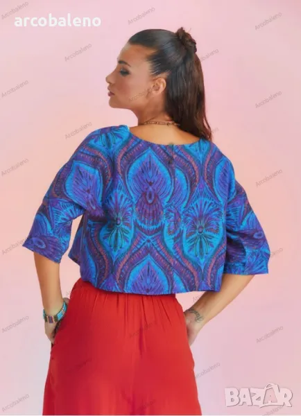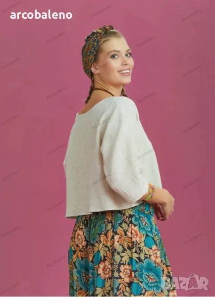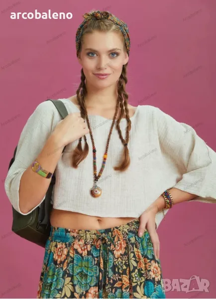 Деколте тип лодка, 3/4 ръкав, свободна кройка, бохемски стил, изрязано горнище