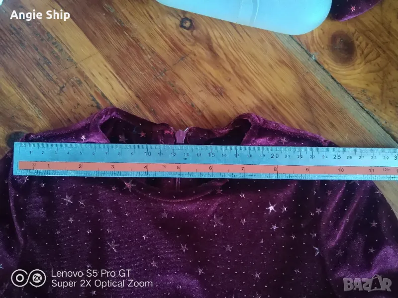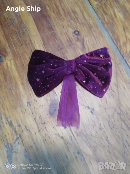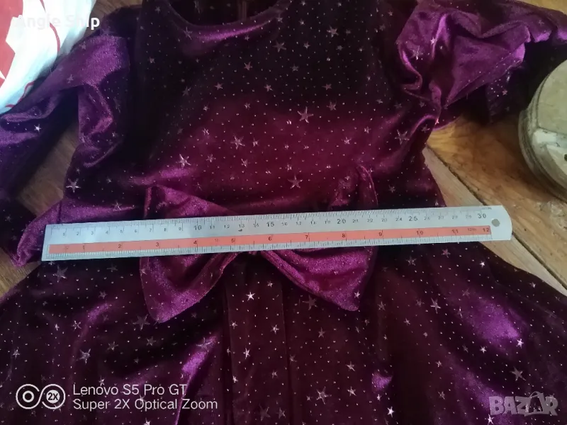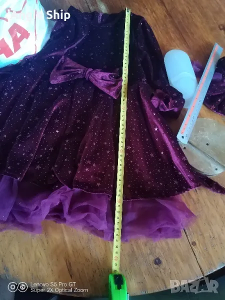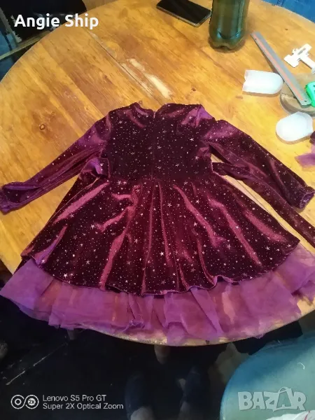 Официална рокля за момиченце с подходяща панделка за коса, от полиестерно кадифе, бордо, шарка на звезди, не е използвана.