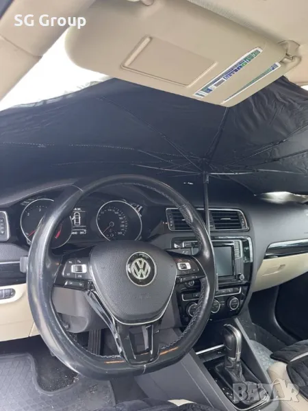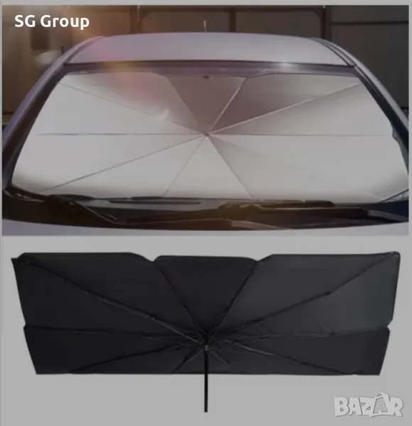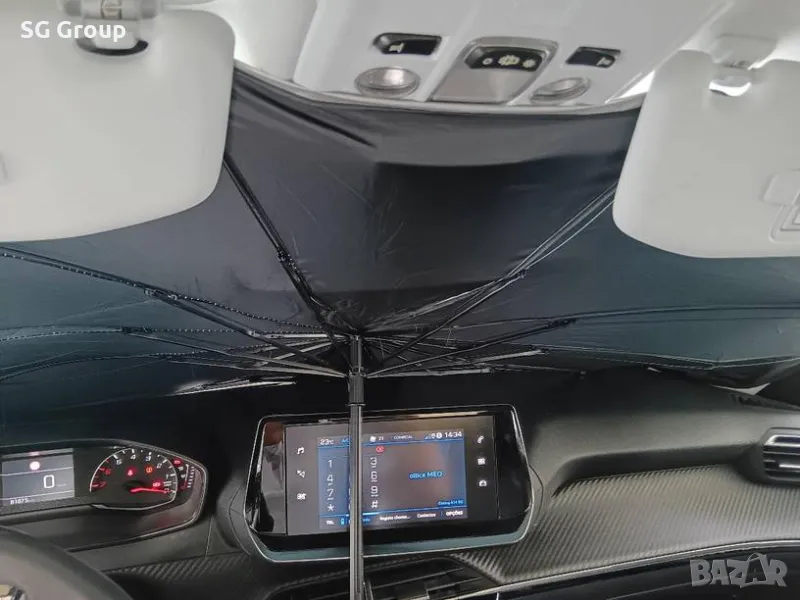 Сенникът под формата на чадър за предното стъкло на автомобила е идеалната защита срещу слънчевите лъчи и спомага за намаляване на температурата в автомобила. Готов за употреба веднага, чадърът е удобен, лесен за съхранение и използване.