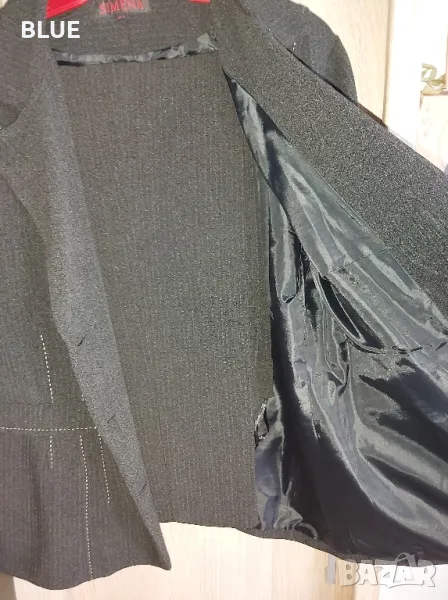 Елегантен вълнен зимен дамски костюм от леко вталено сако и панталон. Страхотна материя и качество. Модна къща. Размер по етикет 56 Бг размер.Размери на сакото: Дължина от рамото 69 см. Ширина под мишниците 58 см. Талия 56 см. От ханша со долу от 60 до 63 см. Панталон: Дължина 102 см. Талия 44 см. Ханш 58 см. Крачол от чатала до долу 74/75 см., в бедрото 32 см.коляно 26, долу 25см. Костюмите е обличан веднъж по повод и е в абсолютно перфектно състояние, като нов.