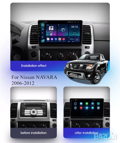Мултимедия, Двоен дин, за Nissan NAVARA, Андроид, Навигация, Нисан Навара, Дин плеър екран Android