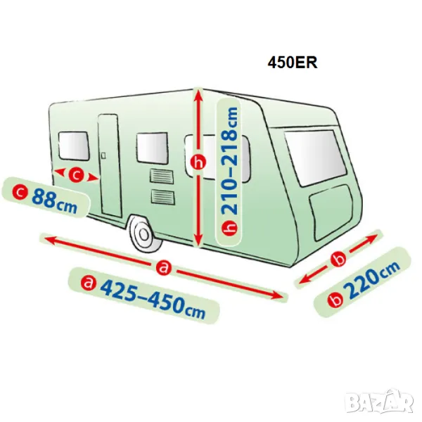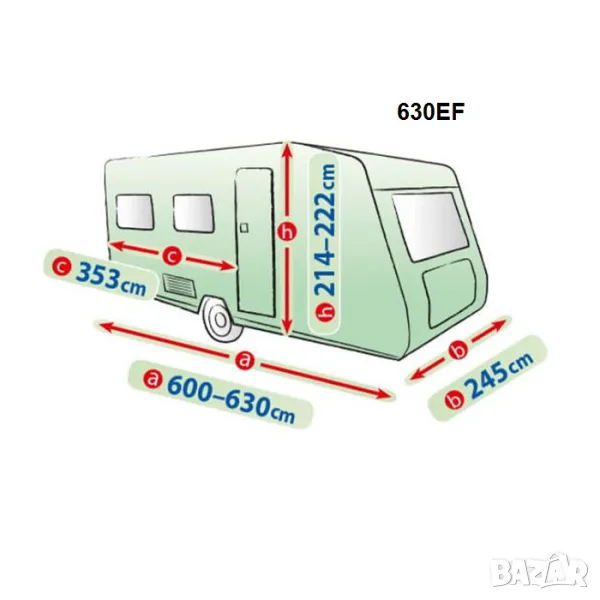ВАЖНО: При избор на подходящо покривало за Вашата каравана обърнете внимание на дължината, височината, ширината и позицията на входната врата.