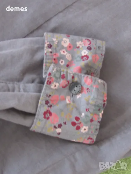 Цвят - графитено сиво, с флорални маншети и столче на яката.