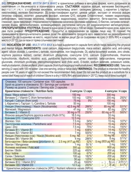 - Комплексна УЛТРА формула с 12 Витамина, 8 Минерала, МАКА, CoQ10 и L-Карнитин