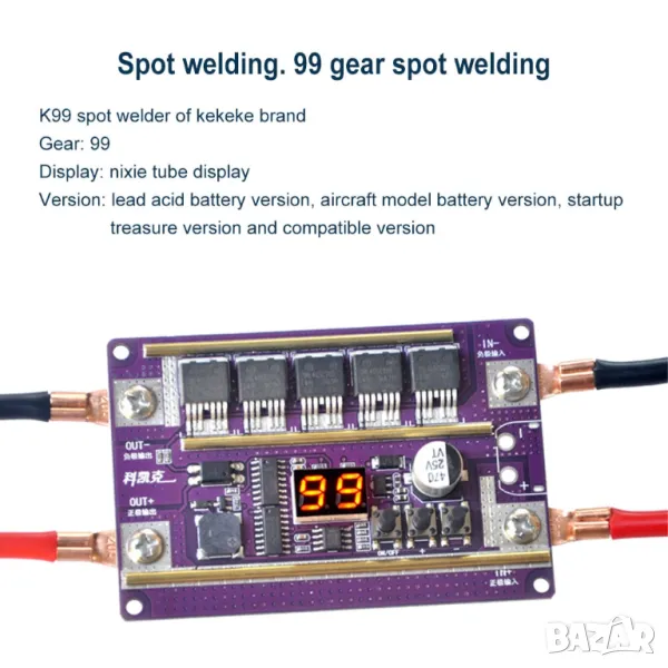 Дизайн с висока изходна мощност, 99 степени на регулируема изходна мощност, по-точно заваряване и може непрекъснато да заварява хиляди точки върху никел/никелиран лист.