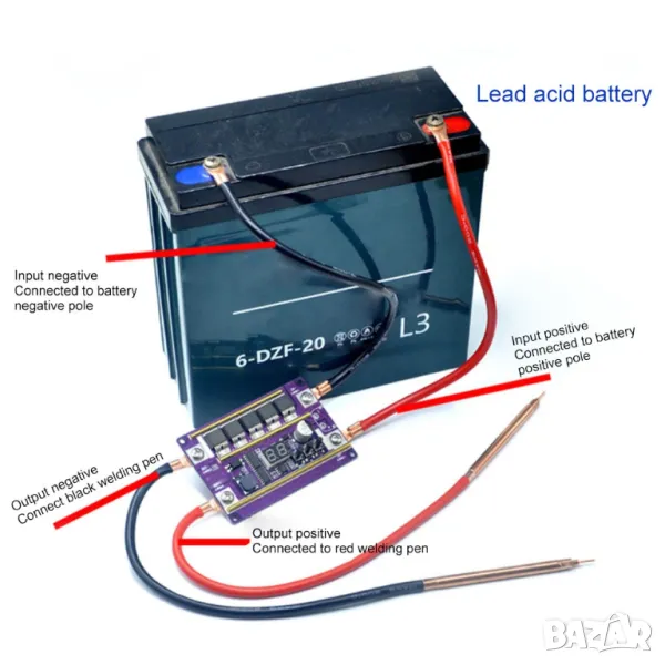 3. Захранване: оловно-киселинна батерия (не използвайте превключвател/