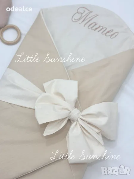 Одеялцето Little Sunshine тип "прегърни ме", подходящо за малки бебчета е практично, красиво и много удобно. Малките съкровища ще бъдат защитени и внимателно загърнати в него, благодарение на помощните залепващи се страни, които осигуряват комфорт и сигурност. Важно е да отбележим, че е и бързосъхнещо. Повиването на новороденото бебенце става бързо и лесно, много удобно за изписване, удобно за разходки с количката, сън вкъщи, подходящо за подарък, може да се използва като завивка, когато се разгърне.