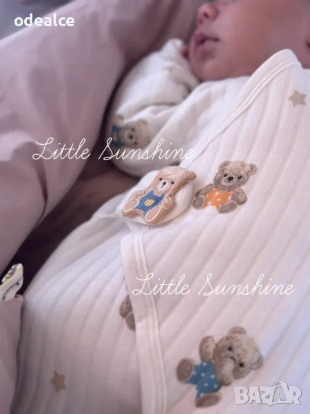 Одеялцето Little Sunshine тип "прегърни ме", подходящо за малки бебчета, е практично, красиво и много удобно. Удобен аксесоар, с който може да прегръщате малкото и крехко бебче по-лесно и сигурно.