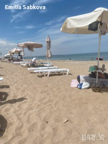 Прекрасен, огромен плаж на около 1, 200 км с безплатни места за паркиране в гора.Има и заведение с платени щезлонги