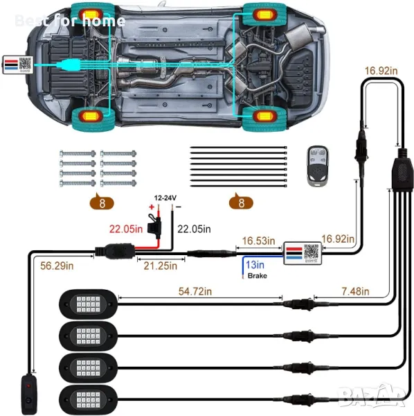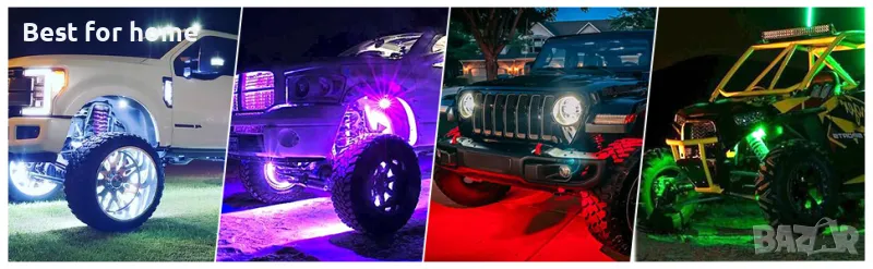 Лесна инсталация и широко приложение➤ Sacn QR код на кутията на драйвера, за да изтеглите ПРИЛОЖЕНИЕ за вашите LED светлини за кола, приложението е съвместимо с iOS 7/Android 4.3 или по-нова версия. Комплектът Rock Lights може да се използва широко за Off Road, 4X4, мотоциклети, ATV/SUV/UTV, камиони, коли за голф, лодки и т.н. Ако имате нужда от удължителен кабел, моля, купете asin: B0B8GYCXZ5.