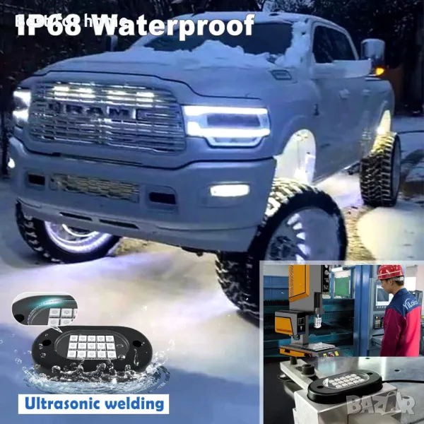 60 светодиода Многофункционален комплект с неонови подсветки с висока яркост Водоустойчива светлина с APP/RF контрол Многоцветни светлини за ATV RZR UTV SUV Офроуд автомобил, DC 12V (4 броя)