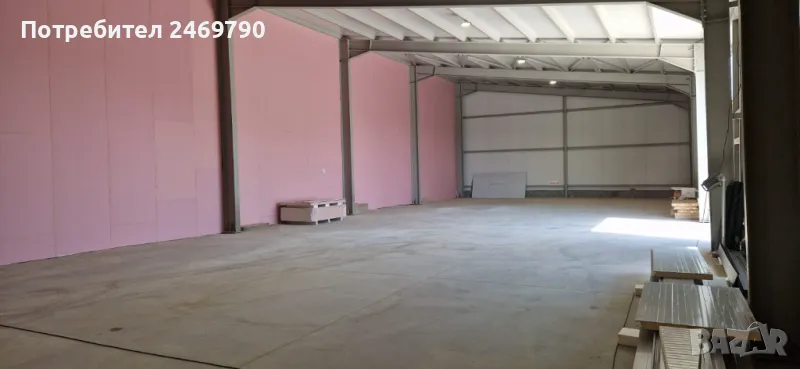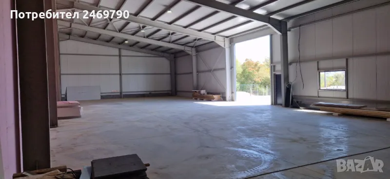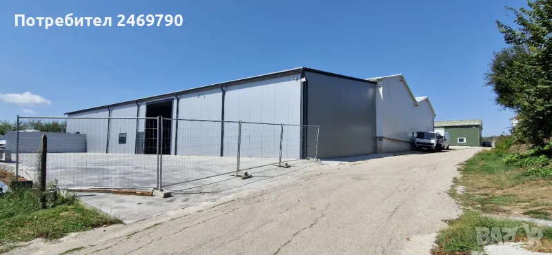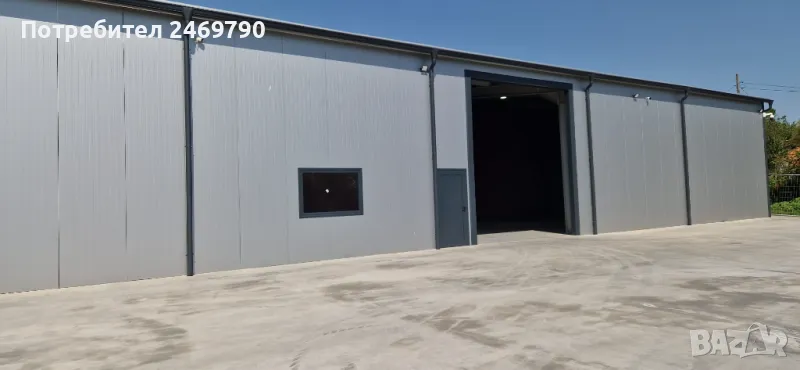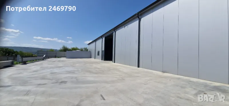 Отдаваме под наем склад със застроена площ 380 м2, конструкция - едноскатово метално хале с термопанел, височина до ниската част 5.00 м, височина до високата част 7 м, височина на индустриалната врата 4.50 м, ширина – 4 м /1 бр. врата/. Трифазен ток, ВиК. Възможност за видеонаблюдение, интернет и СОТ. Ще бъде изградена офисна част, състояща се от офис и сервизно помещение /тоалетна, мивка, душ/ с обща площ около 18 м2 /снимките на офиса са илюстративни/. Брандмауерите ще бъдат шпакловани и боядисани в бяло. Бетонирана площадка пред склада с площ около 400 м2. Асфалтов път до имота. Без рампа. Местонахождение - на 150 м от главен път София-В.Търново, първи разклон за с. Леденик.