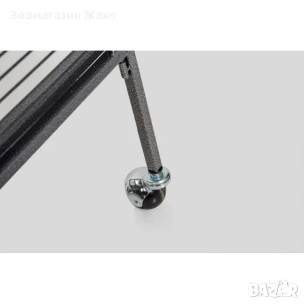 почистване.Клетката е на колелца за лесно придвижване, които се монтират по желание.Комплекта съдържа схема и ключе-шестограм за бързо и лесно сглобяване.Монтираните около клетката улеи с обратен наклон не позволяват на боклуците да падат извън нея.