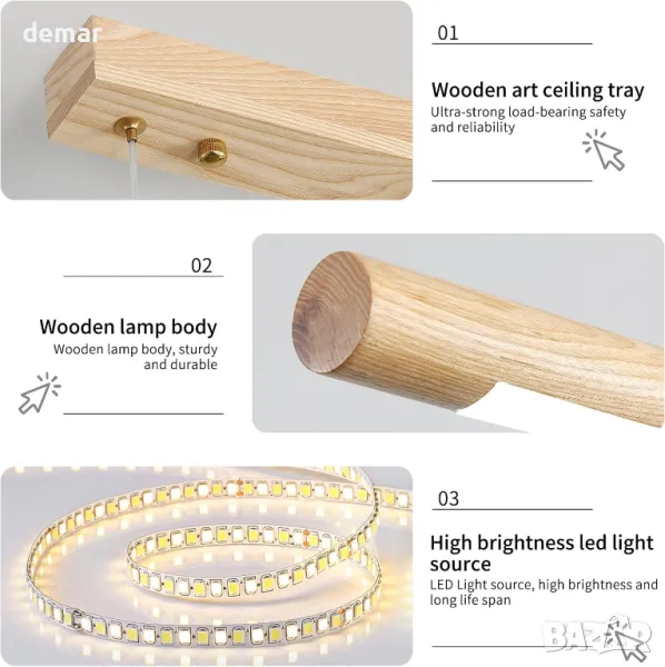 Тази LED висяща лампа предлага 10%-100% димиране чрез дистанционно управление, което ви позволява да регулирате яркостта от тъмно към ярко и цветната температура от 3000K-6000K, за да отговарят на различни сценарии. Изработен от издръжливо естествено ясеново дърво с прозрачни зърна, той добавя вдъхновена от природата естетика към вашия дом. Енергийно ефективните LED светлини пестят енергия и могат да се похвалят с живот от над 50 000 часа, намалявайки необходимостта от честа смяна на крушките. Устройството разполага с регулируема височина до 150 сантиметра за гъвкав монтаж, въпреки че е съвместимо само със стандартни стенни превключватели, не и димерни превключватели.