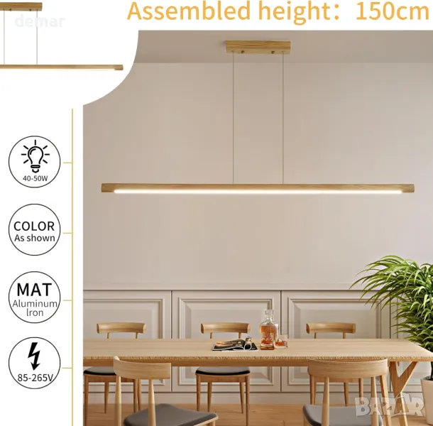 Дървен линеен пендел Mikeru, 100 см димируем 3000k-6500k LED