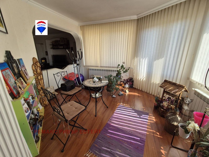 Имотът е на два етажа и е с РЗП от 222 кв.м. Първият етаж се състои от входно антре, всекидневна с трапезария и голяма тераса, баня и тоалетна в едно помещение. Вторият етаж се състои от три спални, две от които са с излаз на тераса, баня и тоалетна в едно помещение, перално помещение и килер. Към имота има и гараж 27 кв.м., който е обособен за две коли. Към имота принадлежи двор от 635 кв.м., и голям приземен етаж с площ от 28 кв.м. Покривът на къщата е в много добро състояние. Цялото обзавеждането на къщата е с мебели от висок клас, подовите настилки са от естествено дърво и гранитогрес под който има изолация. Таваните на стаите са с много красива гипсова орнаментика. Има изградена инсталация на локално парно с радиатори. Предвид локацията на къщата в централната част на града на тиха и спокойна улица, имотът е идеален за покупка, както за постоянно живеене така и с цел инвестиция в бъдеще.