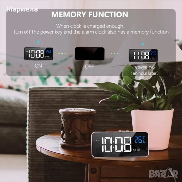 Този дигитален будилник разполага с 5,6-инчов LED огледален дисплей за лесно четене, един от най-добрите будилници за спалнята поради своята простота, с този първокласен дигитален часовник ще обичате да се събуждате всяка сутрин.