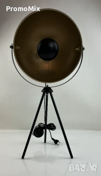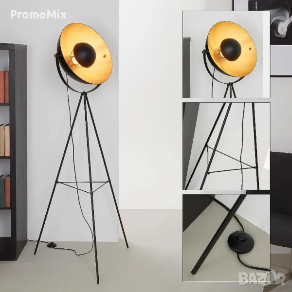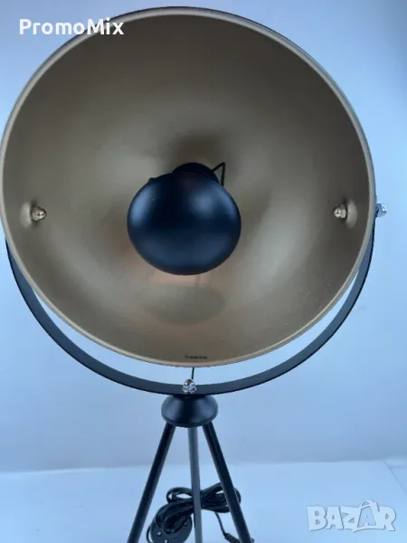 подова лампа изработена във винтидж дизайн, с корпус в черен и вътрешност в златист цвят.