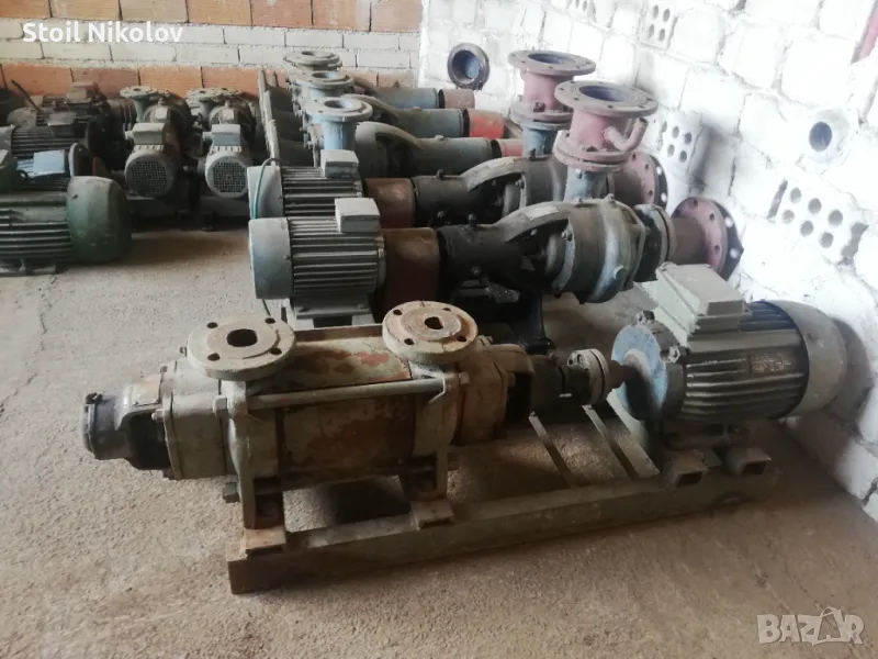 4. Един брой употребявана центробежна многостъпална високонапорна помпа 2МП18.5 с дебит 1.75литра/секунда и напор 90 метра, комплектована с електродвигатели 5,5 кВата/3000оборота/минута - цена 400 Евро .