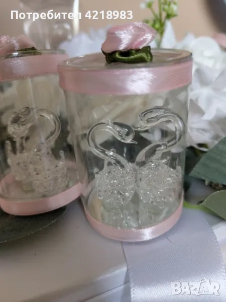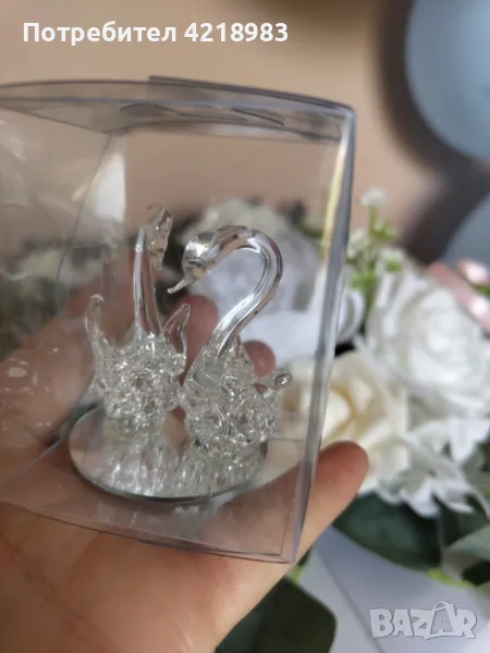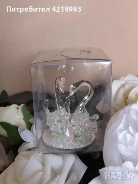 Кристални/стъклени лебеди с украса и надпис → Обява 47106674