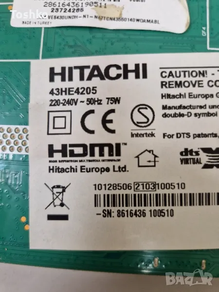 HITACHI 43HE4205 MAIN BOARD 17MB181TC POWER BOARD 17IPS62 PANEL VES430UNDH-N1-N47 → Обява 47108088