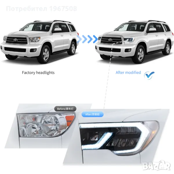Комплект LED фарове за Toyota Sequoia 2008-2020 и Toyota Tundra 2007-2013.