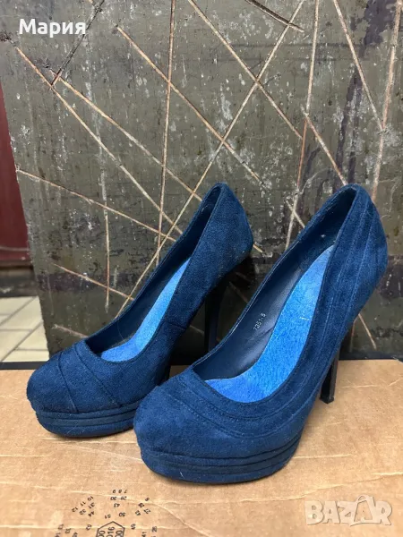37. Дамски тъмно сини велурени обувки на ток. 38-ми номер. Обувани 1 път