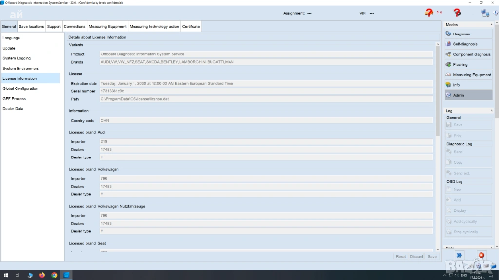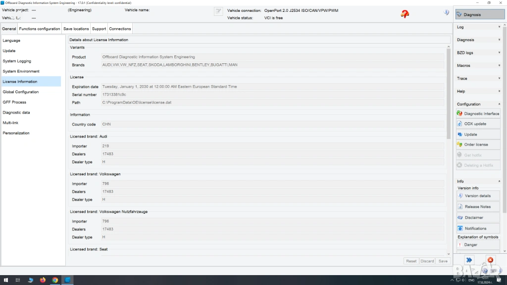 - Софтуер ODIS Engineering 17 – Дилърския софтуер за програмиране на VAG – напълно отключен и активиран