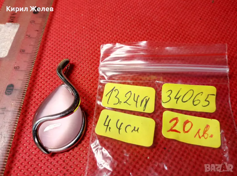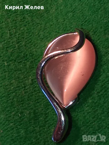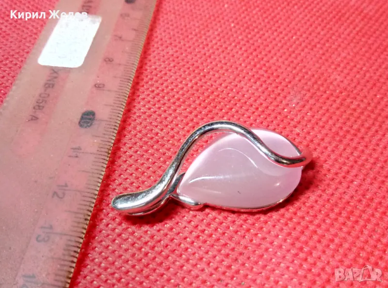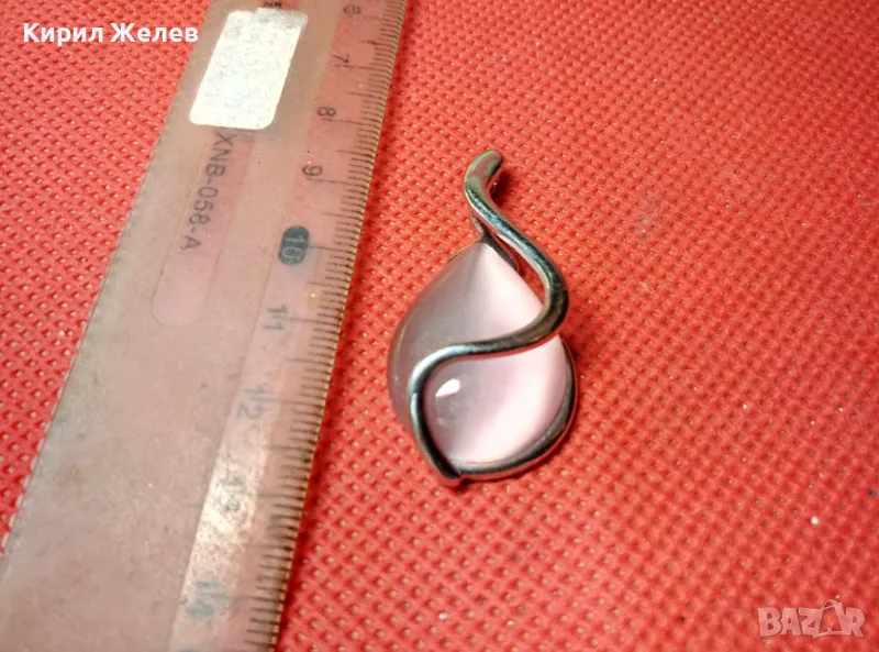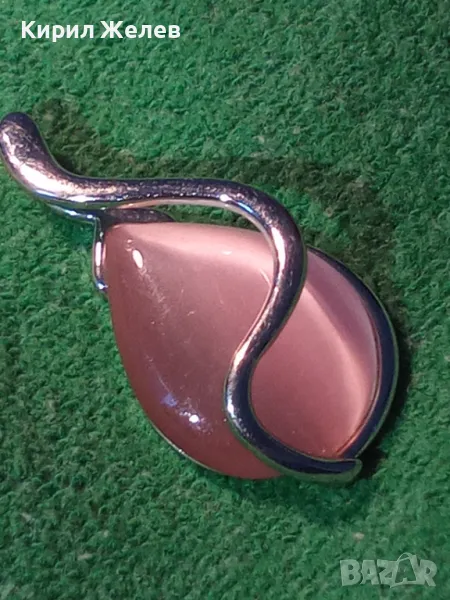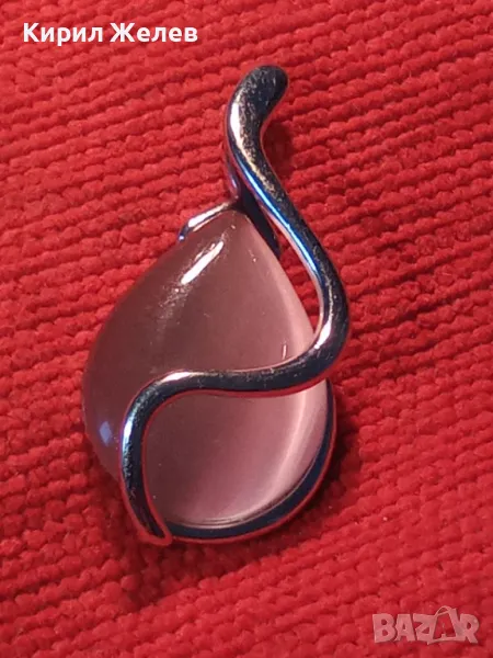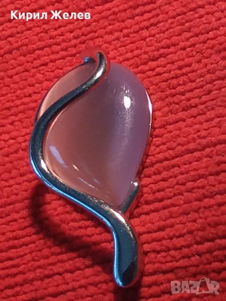ЕЛЕГАНТЕН ФЕШЪН АРТ МЕДЕН МЕДАЛЬОН с ПОЛИРАН РОЗОВ КРИСТАЛ КВАРЦ и БЯЛА ПОЗЛАТА 34065