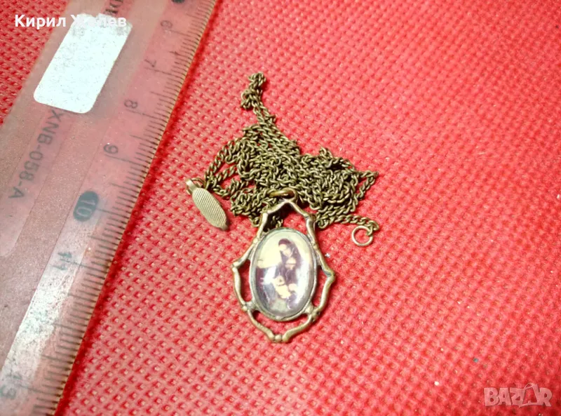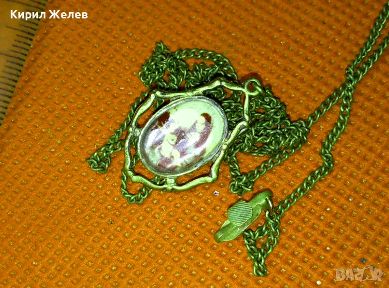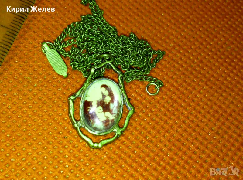 СТАРА РЕТРО СТИЛ РИМОКАТОЛИЧЕСКА БРОНЗОВА ИКОНКА с ВЕРИЖКА 27788