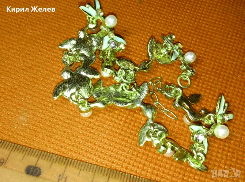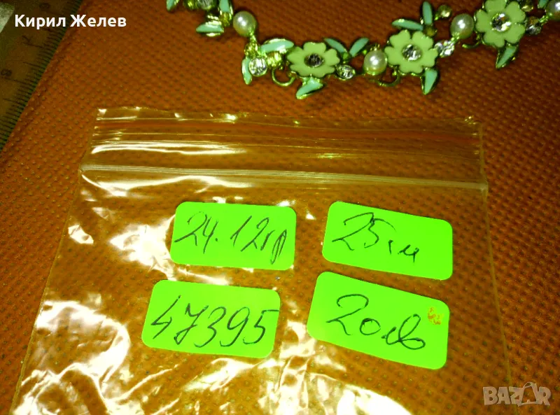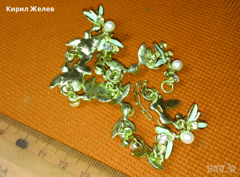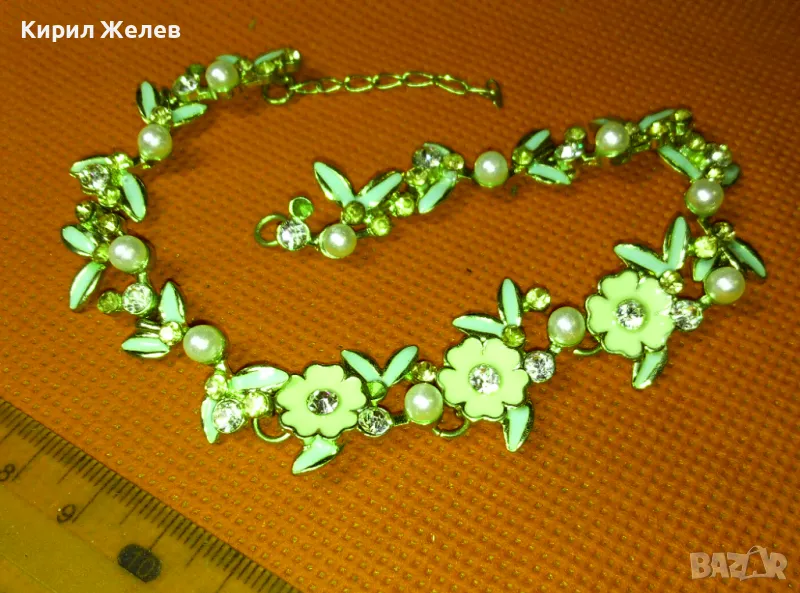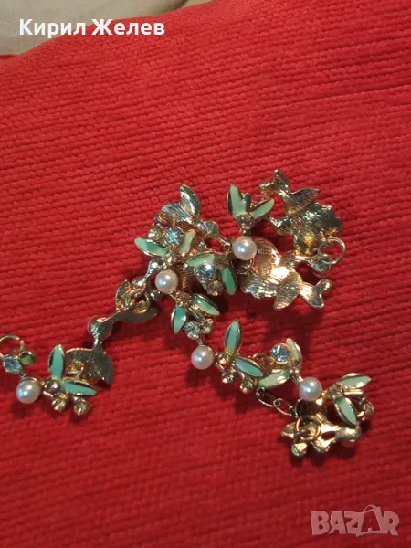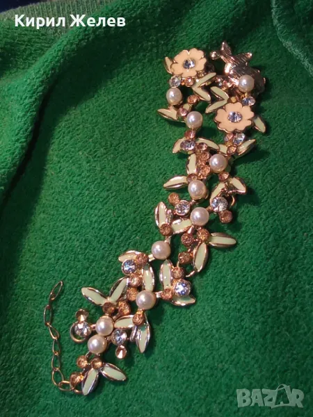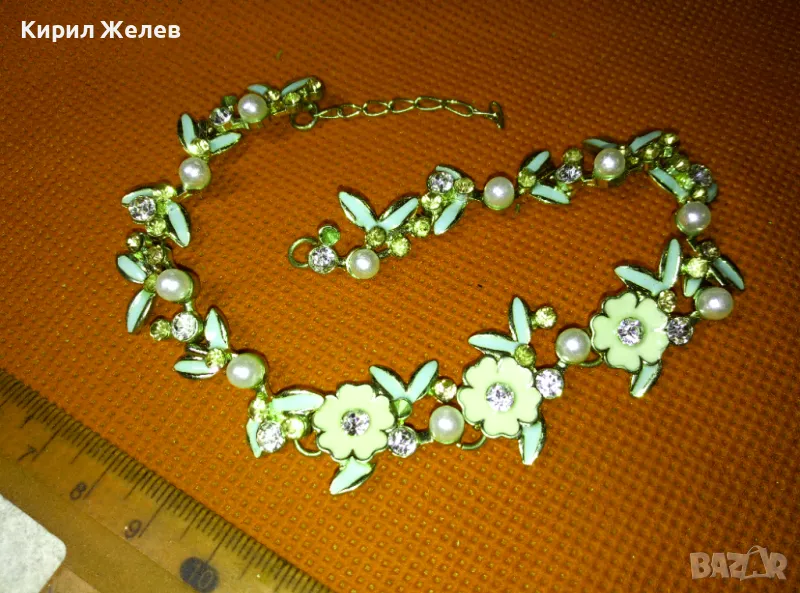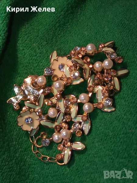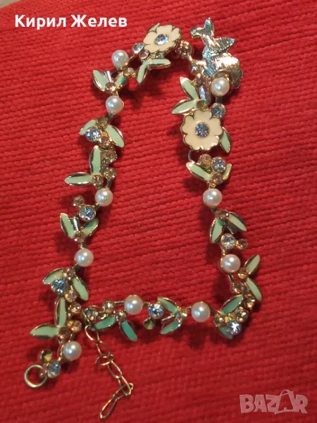 НЕЖНО ЗЛАТИСТО ФЛОРАЛНО ЕМАЙЛИРАНО КОЛИЕ с КРИСТАЛИ и ПЕРЛИЧКИ 47395