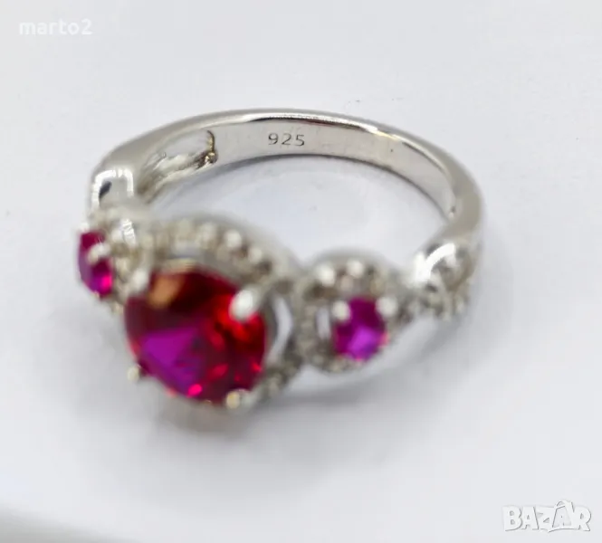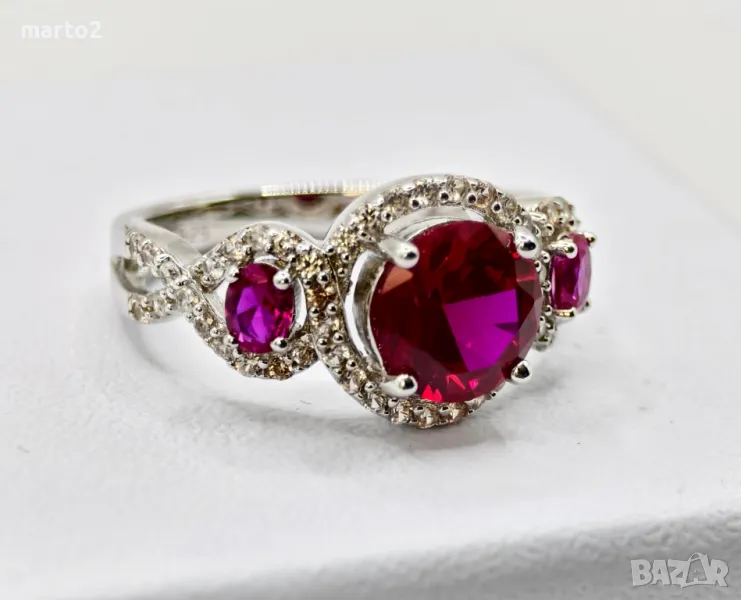 Пръстенът е с камъни Лабораторни Рубини обградени от множество Циркони!