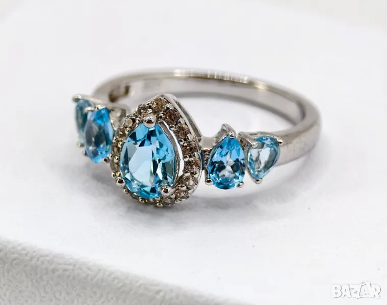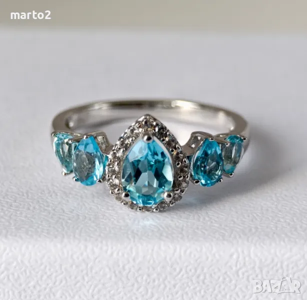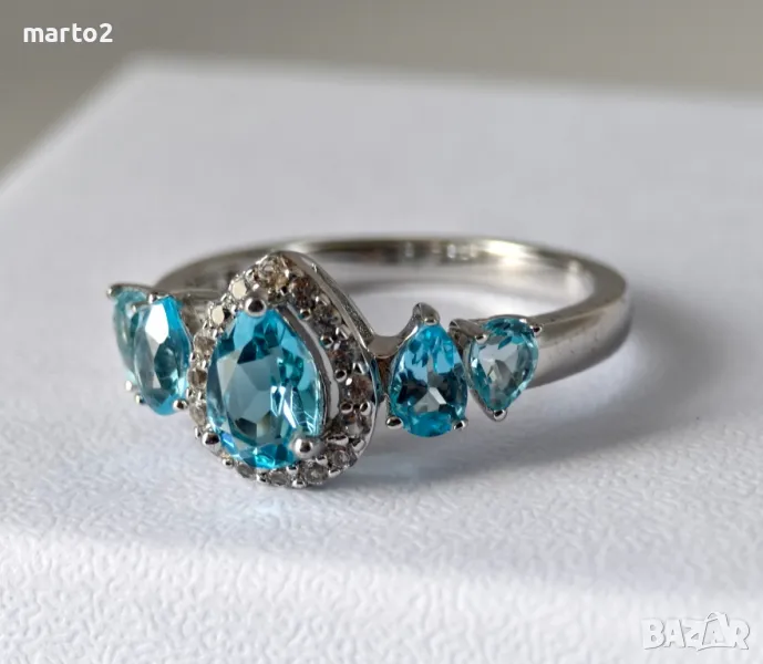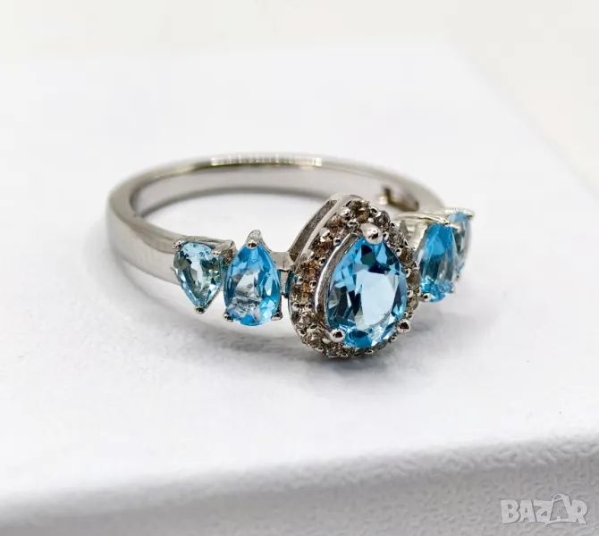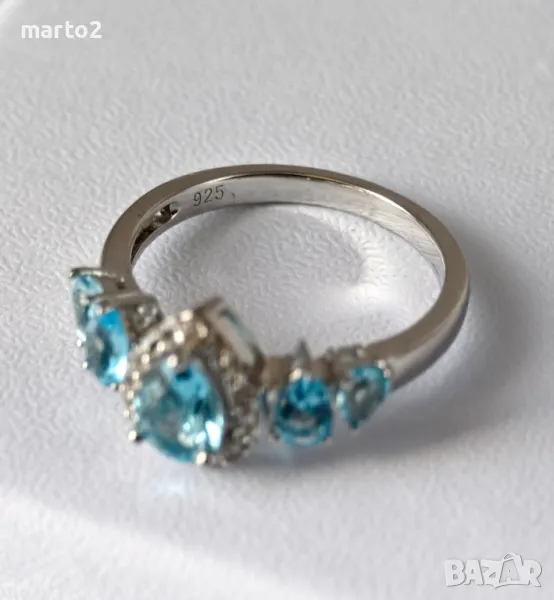 Пръстенът е с камъни - Натурални Sky Blue Топази и Циркони!