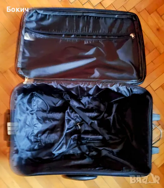 Запазен куфар L.Lambertazzi, платнен, с размери: 65/40/27-33 см, черен, среден, с 2 колела → Обява 47112668