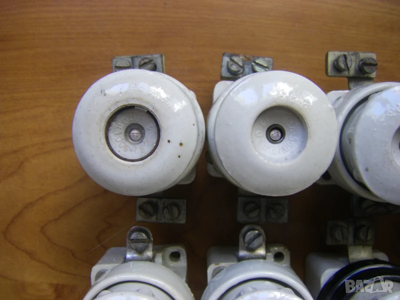 - 8 броя по 0.75 Евро основи за винтови керамични предпазители 25А/500В