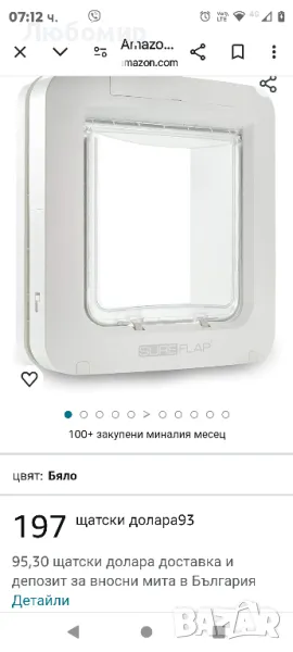 По-голяма от стандартната клапа за котки, вратата за домашни любимци е предназначена за големи котки и малки кучета. Вграденият таймер за вечерен час ви позволява да настроите вратата да се заключва и отключва в определени часове. Може да се настрои да се заключва по едно и също време всеки ден.Вратата за домашни любимци SureFlap с микрочип се отваря само за вашия домашен любимец, за да имплантира ветеринарен микрочип или RFID етикет, за да предпази натрапниците животни, така че вашият домашен любимец да се чувства в безопасност в собствения си дом. Ако натрапчиво животно влезе в дома ви, това може да причини много стрес на вашия домашен любимец и да доведе до битки или следи от пръскане на закрито. Вратата за домашни любимци SureFlap Microchip е съвместима с всички обичайни типове микрочипове. Може да съхранява до 32 домашни любимци и има селективен достъп, предотвратявайки натрапници, докато всяка котка може да напусне. Вратата за домашни любимци може да се монтира на врати, прозорци или стени и работи на батерии, което означава, че може да се монтира практически навсякъде. За стъклени инсталации е необходим монтажен адаптер за врата за домашни любимци, а за стенни инсталации може да са необходими монтажен адаптер и един или повече тунелни удължители.