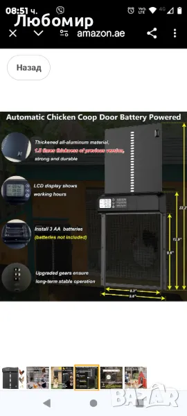 Автоматична врата за кокошарник, DINSLIA удебеляваща се алуминиева автоматична врата за кокошарник, захранвана от батерия с таймер LCD екран, водоустойчива врата за кокошарник.