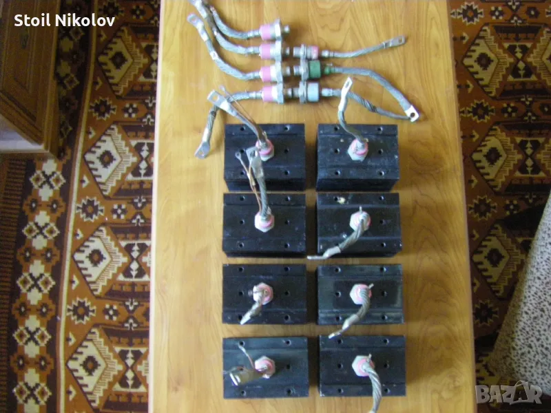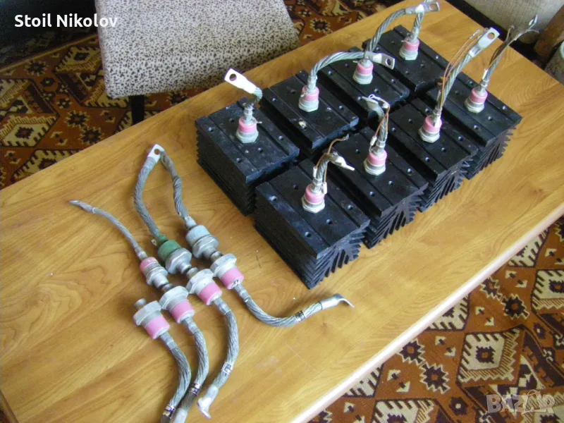 1.Мощни нови руски тиристори Т161-160-8-22 УХЛ2 монтирани на алуминиеви радиатори с размери 140/100/100мм - 8 броя по 15 евро комплек тиристор плюс радиатор. 2. Един брой нов мощен руски тиристор Т161-160-9-22 УХЛ2 - ПРОДАДЕН !!!