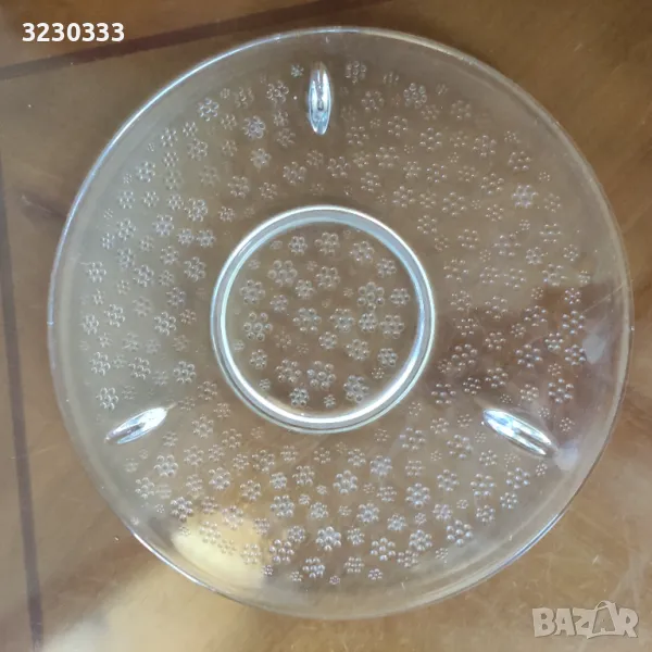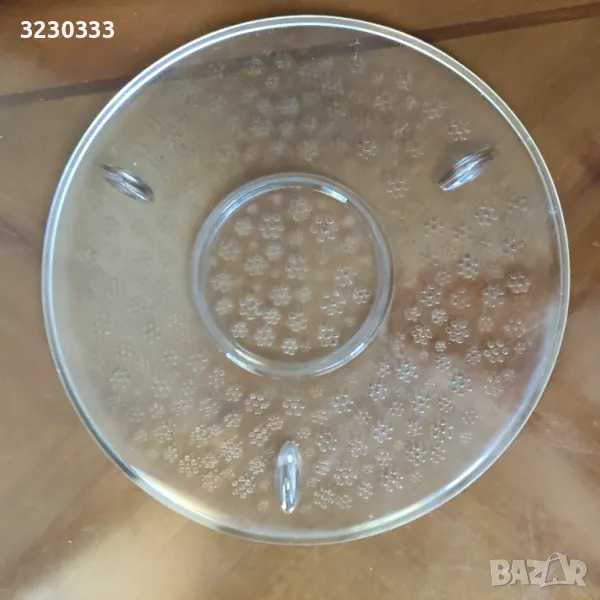 1 бр.стъклено на три крачета и гравирано на цветчета-диаметър-31.5 см.