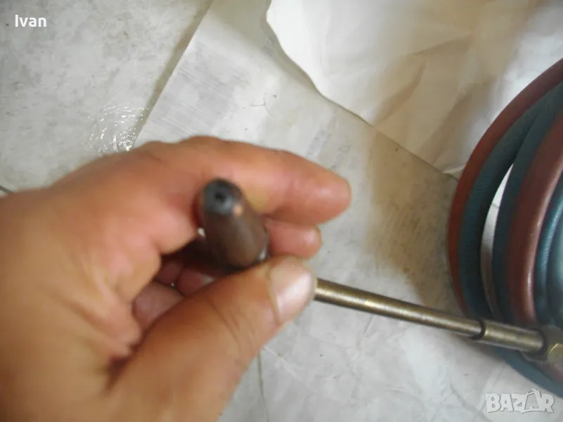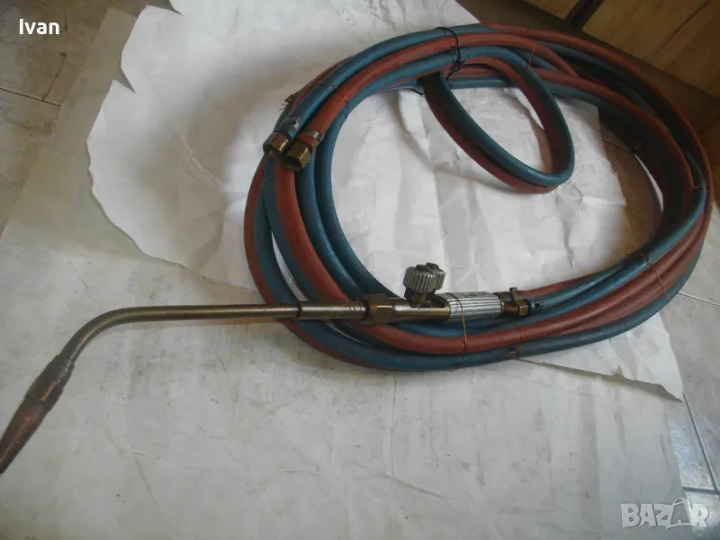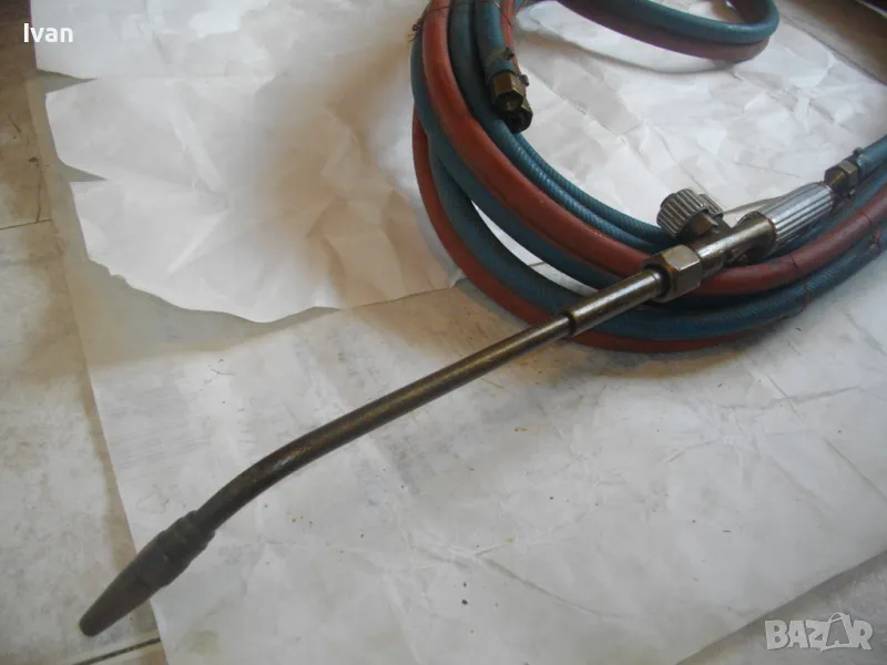 Цялостна дължина 52 см. Производство - старо качествено Германия/Холандия. Запазен външне вид и отлично техническо/работно състояние. Алуминиева дръжка. Алуминиеви въртоци 2 бр. спирателни кранове. Бронзови тръба и глава. Дюза контактна медна голяма с дължина 6 см и 1 голяма дупка за пламъка.