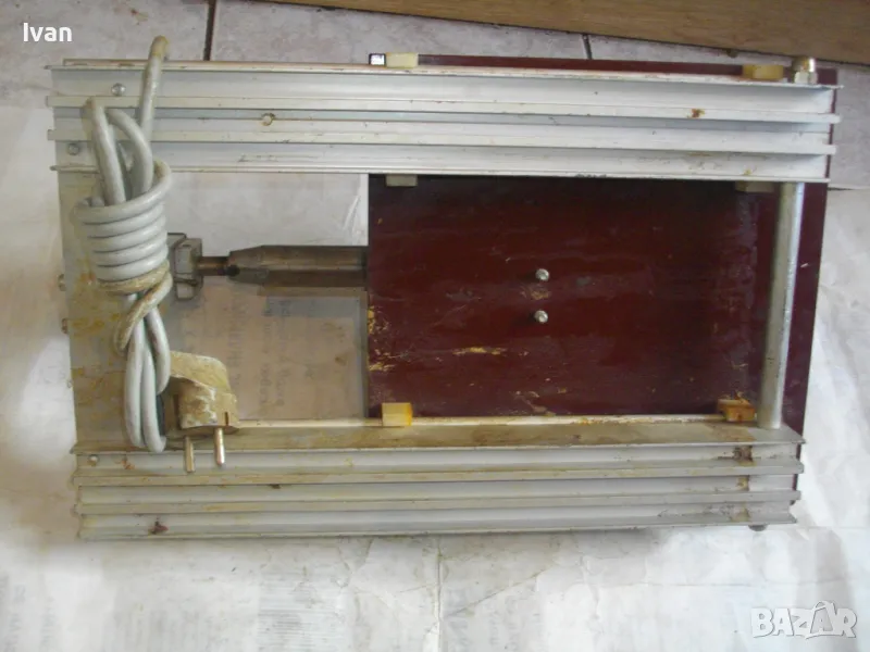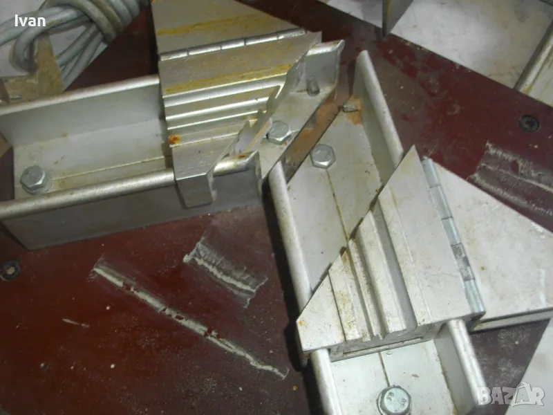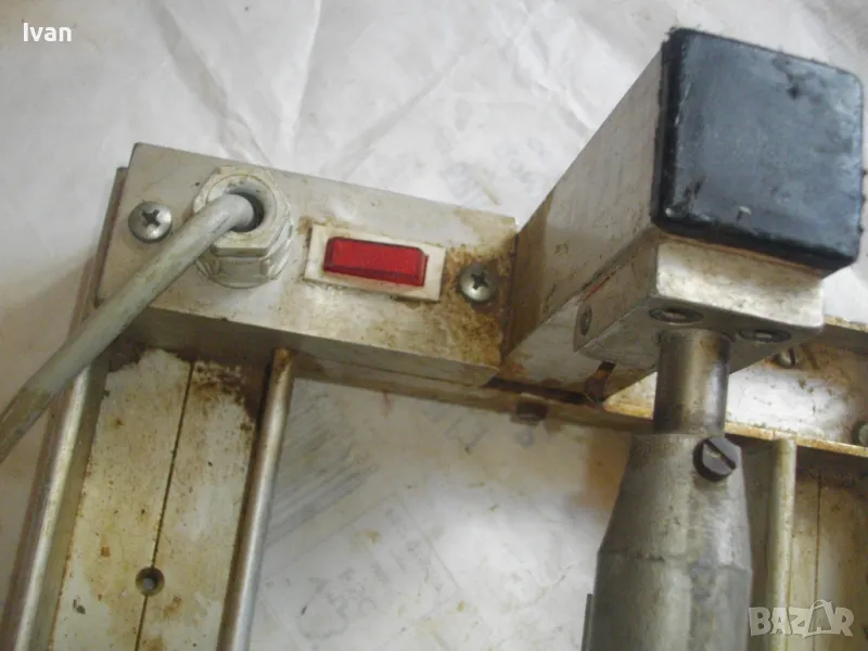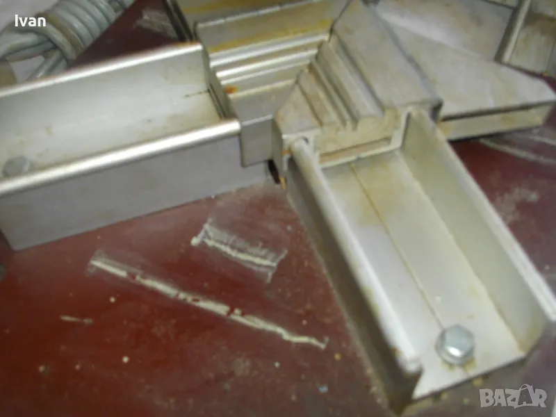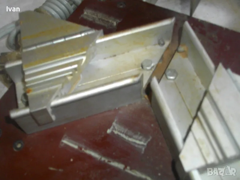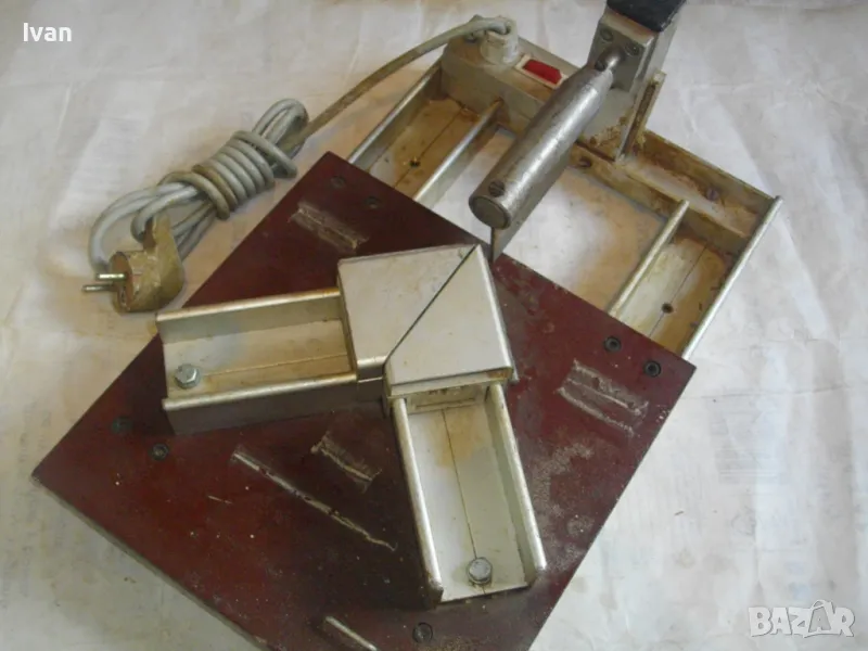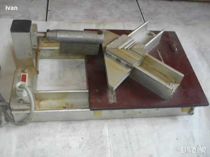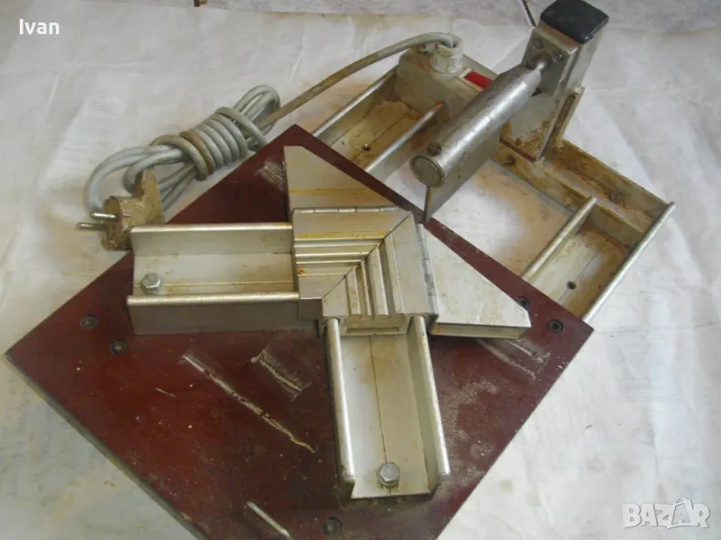 Почти нова малка удобна машина за рязане и слепване/залепване/заваряване на гумени уплътнения за интериорни външни и вътрешни врати ,професионална .Машината е завършен цикъл-рязане и заваряне в една операционна стъпка,спестявайки време и разходи.За универсални уплътнителни профили.Профилите матрици на нея са изцяло от дуралуминий.Не е упоменато производство-липсват фабричните стикери.Работи на 220 волта.За уплътнителни профили-уплътнители за вътрешни и външни прозорци и врати от РВЦ,алуминий,дърво-алуминий.Основата на машината също е от дуралуминий изцяло.Има движещ се ръчно гетенаксов плот,на които са разположени матриците-2 на брой.с по 3 канала всяка.Затварят се с панти.Има бавно нагряващ затоплящ се метален нож-терморез,Светлинен пусков ключ.Размери на машината от основата-24см ширина и 38 см дължина.Машината е в отлично техническо състояние.Светва и затопля термоножа.Запазен външен вид-много малко е ползвана машината.