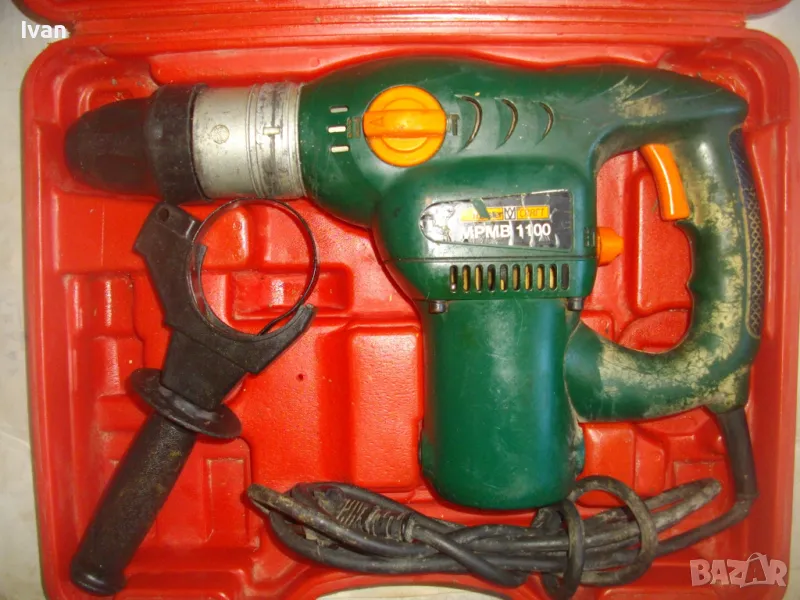 Силен и мощен 1100 ватов голям електрически къртач-перфоратор с оригиналния си куфар, професионален модел на немският концерн Мейстер.