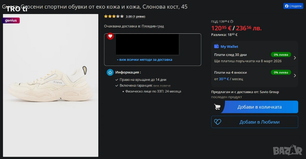 В Bazar.BG от 02 октомври 2014г.