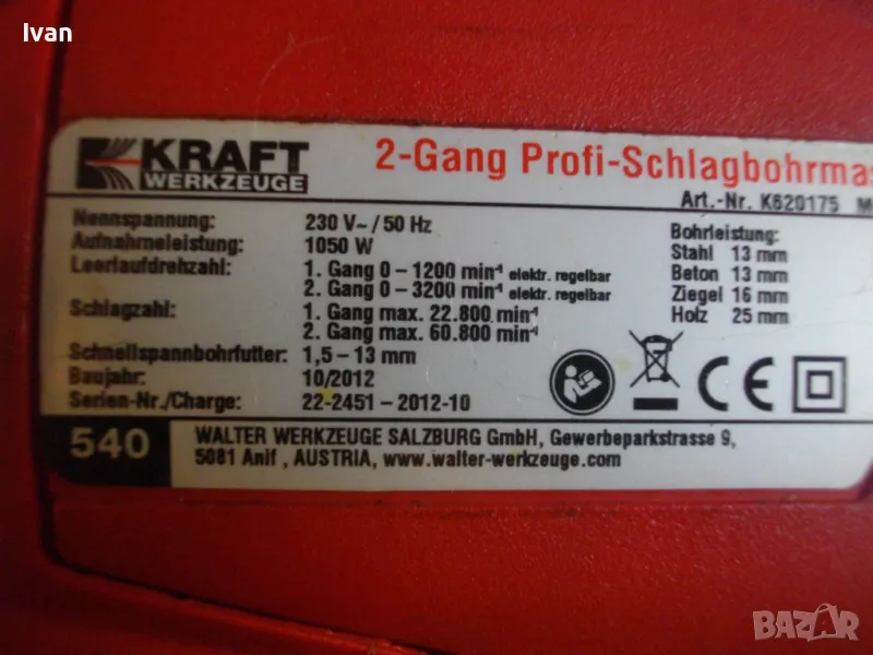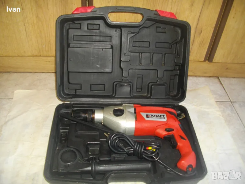 ОПИСАНИЕ на двупозиционна австрийска червена 1050 ватова бормашина, професионален модел на Крафт - в куфар - цена 99 лв. .