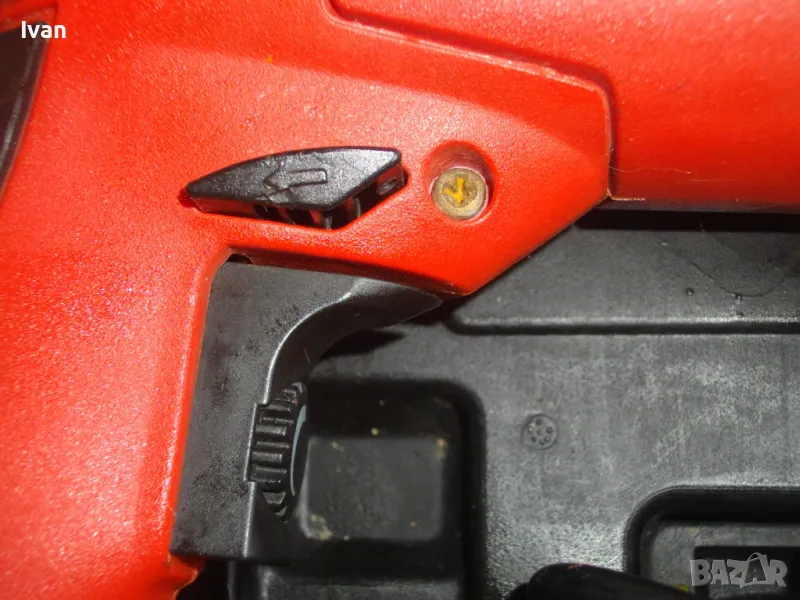 Стоманена редукторна кутия.Корпус-твърдосплавна бакелитова пластмаса.Регулатор на оборотите -вграден на спусъка.Състояние на машината-при пускане работи силно,реверса работи само наляво,надясно бутона влиза - но не движи патронника надясно, движи само наляво и в позиция десен реверс. При максимални обороти-искрене на ниво четки или ротор. Автостопа на машината работи. Единият реверс също.