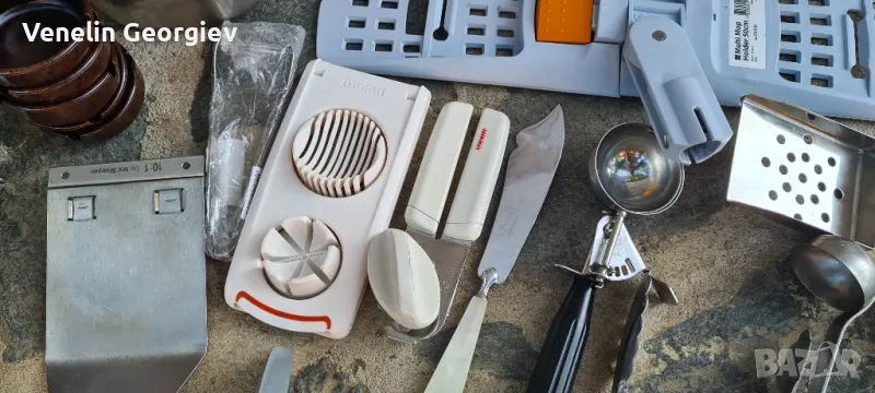 9. Резачка за яйца двустранна, едната страна реже на шайби, другата на конусни резънчета. Произход Германия. Марка: LEIFHEIT, използвана, 20лв.