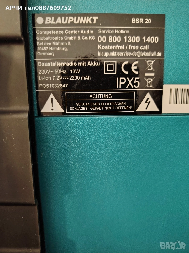 BLAUPUNKT радио за строителни обекти BSR 20 Противоударно радио Blaupunkt, Тюркоаз Водоустойч