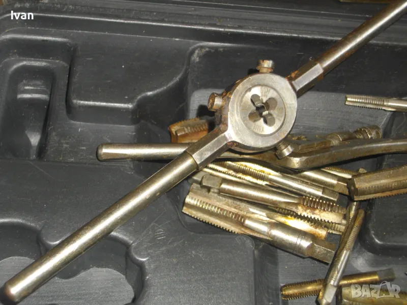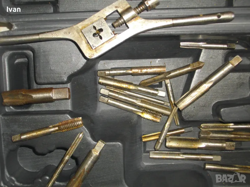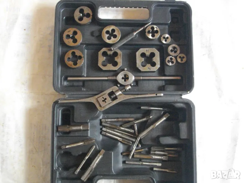 ОПИСАНИЕ на комплект сборен 38 бр. старо качество резбонарезни метчици и плашки - бързоскоростни в пластмасов куфар - цена 399 лв. ОПИСАНИЕ